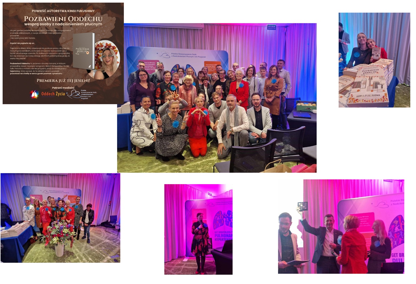 W sobotę, 18 października 2025 roku, w hotelu Novotel Wrocław Centrum odbyło się czwarte już w tym roku, spotkanie pacjentów. Uczestników powitali dr Ewa Mroczek oraz członkowie Zarządu Stowarzyszenia, podkreślając znaczenie wspólnoty i stałej edukacji pacjentów. Następnie odbył się cykl wystąpień eksperckich i pacjentkach: dr hab. Maria Wieteska-Miłek omówiła problem ryzyka niedożywienia w nadciśnieniu płucnym, zwracając uwagę na często niedoceniane aspekty żywieniowe w tej chorobie. Przedstawiciele Stowarzyszenia zaprezentowali działania organizacji oraz plany na nadchodzący rok. Dr Ewa Mroczek przedstawiła najnowsze informacje dotyczące rozwoju terapii i kierunków badań w nadciśnieniu płucnym. Profesor Anna Doboszyńska przedstawiła którą prezentację dotyczącą badania mowy chorych z tnp. Dr Łukasz Biel oraz dr Krzysztof Aleksandrowicz opowiedzieli o roli aktywności fizycznej w życiu pacjentów, podkreślając znaczenie bezpiecznego i kontrolowanego wysiłku. Anna Jelenik, psychoonkolog , wygłosiła niezwykle poruszający wykład pt. Jak chorować i nie zwariować- co mogę dla siebie zrobić. Uczestnicy obejrzeli poruszającą 10 minutową historię Angeliki- „Moje życie z Hickmanem”. Gwiazdą spotkania była oczywiście pisarka – specjalnie dla nas przyleciała z Japonii do Polski – Kinga Fukushima – która napisała książkę „Pozbawieni Oddechu”, a jej główny bohater ma nadciśnienie płucne. Autorka nie tylko podzieliła się swoim doświadczeniem, lecz również po spotkaniu podpisywała książki z osobistymi dedykacjami. Podczas spotkania sprzedawane były niebieskie bransoletki przyjaźni i solidarności. Spotkanie zakończyła pacjentka Marta Tomczyk, która w swoim wystąpieniu pt. „Nie taka pompa straszna, jak o niej mówią- moje zwariowane życie na pompie” opowiedziała o codzienności z pompą i sile, jaką można odnaleźć w akceptacji choroby.